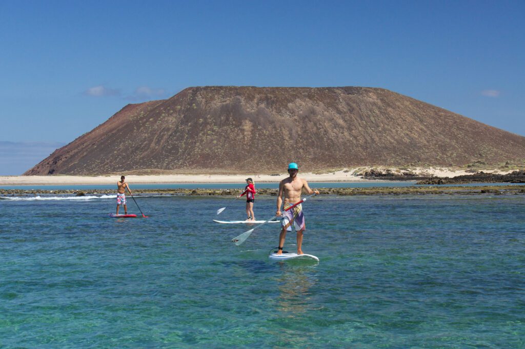 Las excursiones de SUP de flag beach te llevaran a una preciosa laguna en la isla de Lobos, ideal para aprender este deporte relajante. echa un vistazo.